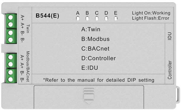 B544(E) — адаптер для подключения сплит-систем Hisense к системам центрального управления и диспетчеризации. Адаптер B544(E) позволяет удобно и в кратчайшие сроки организовать систему центрального управления сплит-системами Hisense (до 16 блоков) или интегрировать сплит-системы Hisense в систему диспетчеризации BACnet / Modbus.