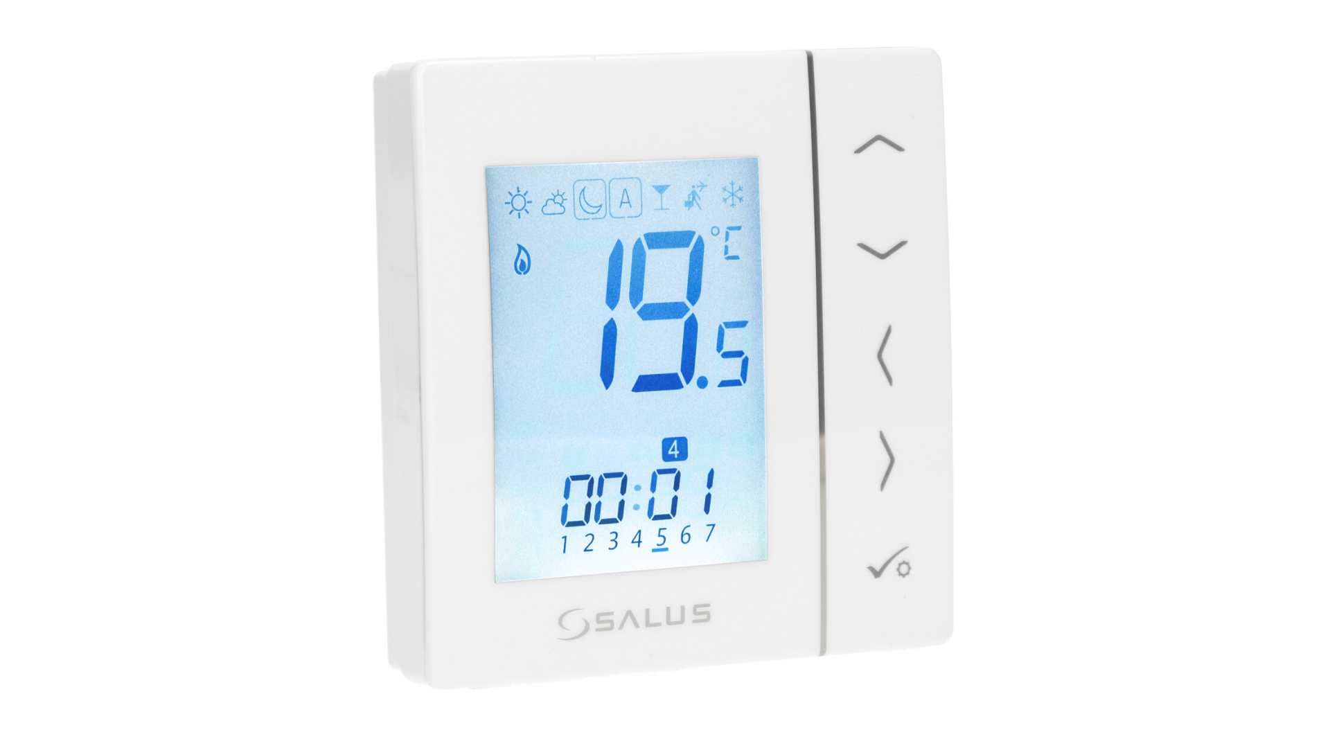Проводной электронный программируемый терморегулятор Salus комнатный встраиваемый с дисплеем, белый