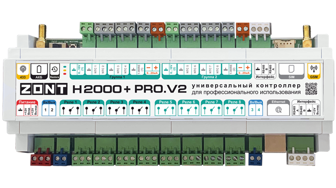 Универсальный контроллер ZONT H2000+ PRO.V2 – прибор для профессиональной автоматизации и дистанционного управления инженерными системами любой сложности.