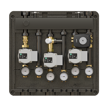 Предназначен для присоединения двух насосных групп. Накидные гайки для подключения насосных групп с наружной резьбой G 1”, межосевое расстояние 125 мм.