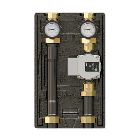 Прямая группа предназначена: для обеспечения циркуляции теплоносителя в контуре радиаторного отопления; для циркуляции в теплообменнике емкостного водонагревателя или пластинчатом теплообменнике; для циркуляции теплоносителя в теплотрассе. Обратный клапан в комплекте. Компактная энергоэффективная изоляция. Доступ к кранам без снятия изоляции.