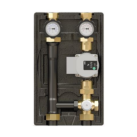 Оснащена трехходовым смесительным вентилем прямого действия со встроенным термодатчиком. Предназначена для циркуляции и поддержания постоянной заданной температуры подающей линии в отопительном контуре водяного теплого пола.