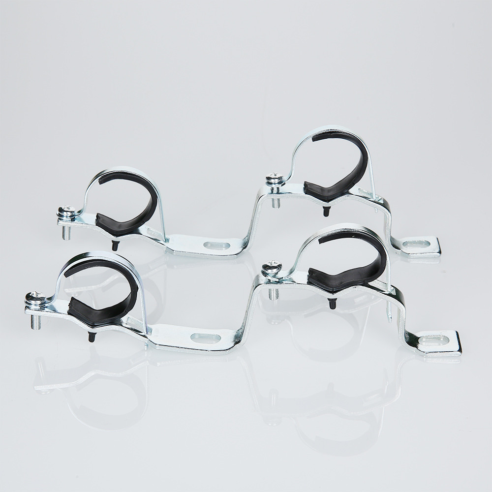 Кронштейны для крепления пары (подающий и обратный) коллекторов к несущей конструкции (стене или коллекторному шкафу). Состоят из крепежной планки, выполненной из стальной анодированной полосы толщиной 3 мм, к которой винтами крепятся два стальных никелированных хомута толщиной 1 мм. В хомуты вставлены прокладки из пластика, служащие тепло- и виброзащитой и предохраняющие коллекторы от механических повреждений. Кронштейны обеспечивают разнос коллекторов по высоте на 115 мм (между осями) и на 32 мм по глубине.