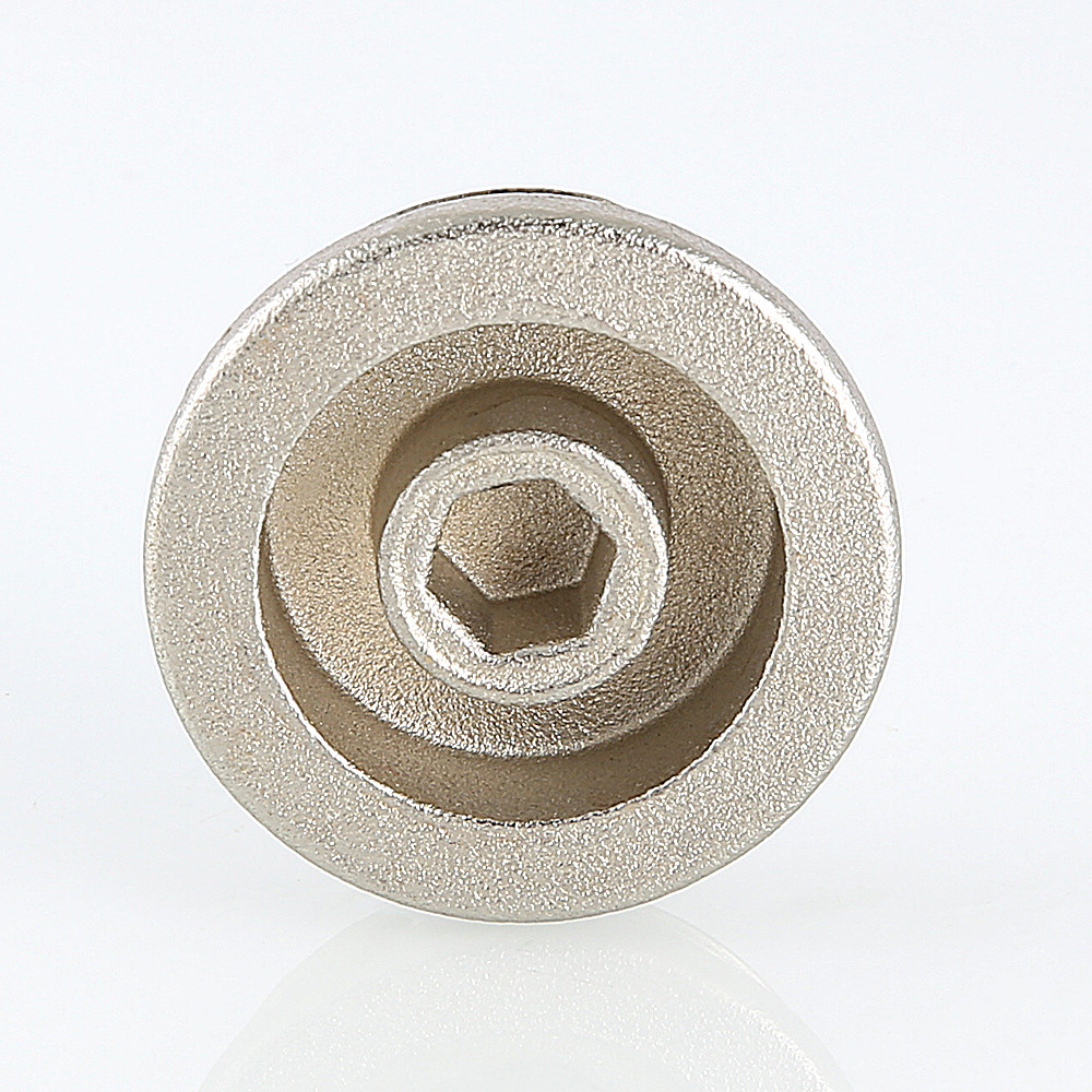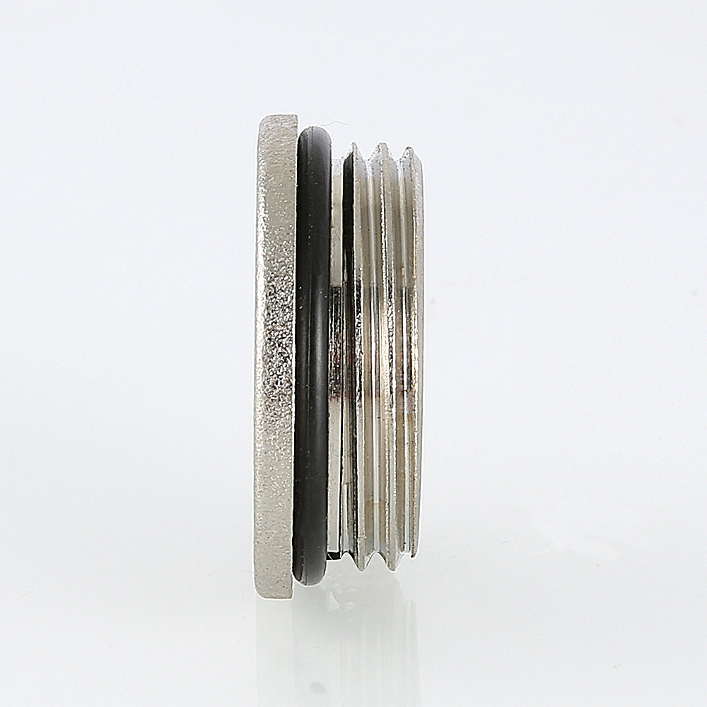 Латунная никелированная пробка c наружной резьбой, используемая для закрытия неиспользуемого присоединительного отверстия коллектора с условным диаметром 1". Головка – шестигранной формы, под гаечный ключ. Уплотнение – кольцо из синтетического каучука EPDM.
