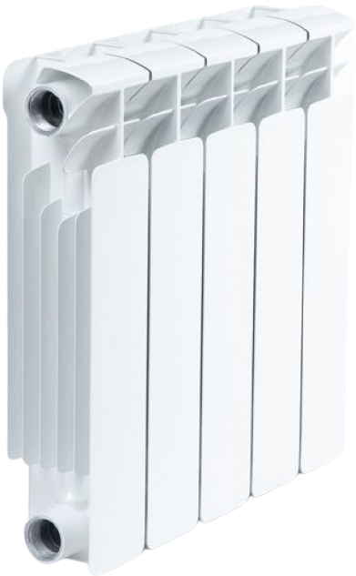 Каждая секция биметаллического радиатора состоит из внутренней стальной части в виде вертикально расположенных трубок, а сверху закреплены алюминиевые пластины;