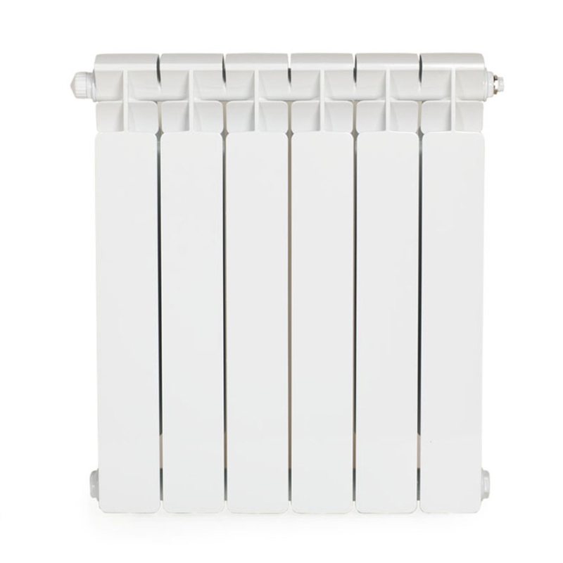 Каждая секция биметаллического радиатора состоит из внутренней стальной части в виде вертикально расположенных трубок, а сверху закреплены алюминиевые пластины;