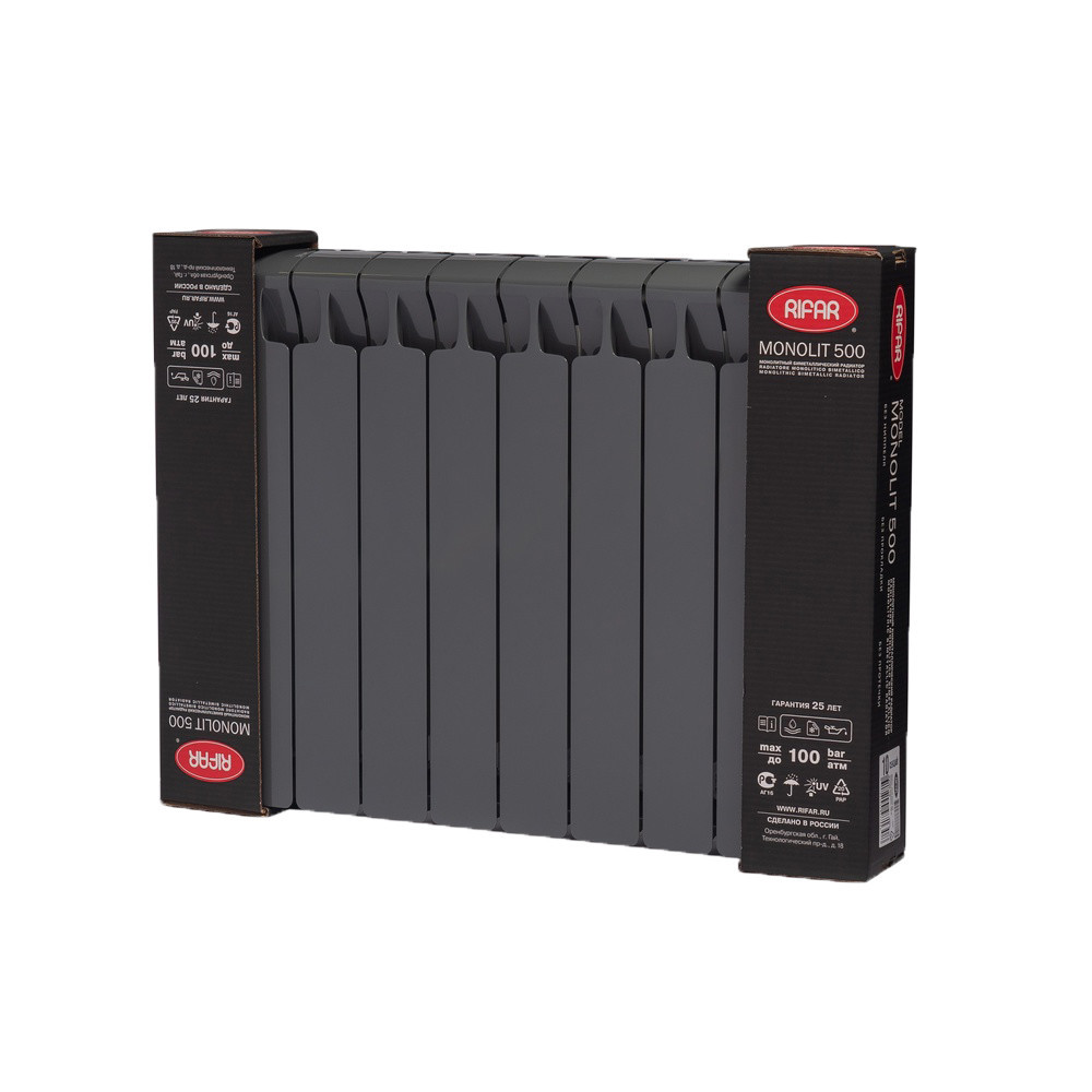 Радиатор биметаллический Rifar Monolit Ventil 500/100 10 секций нижнее левое подключение, цвет RAL9005