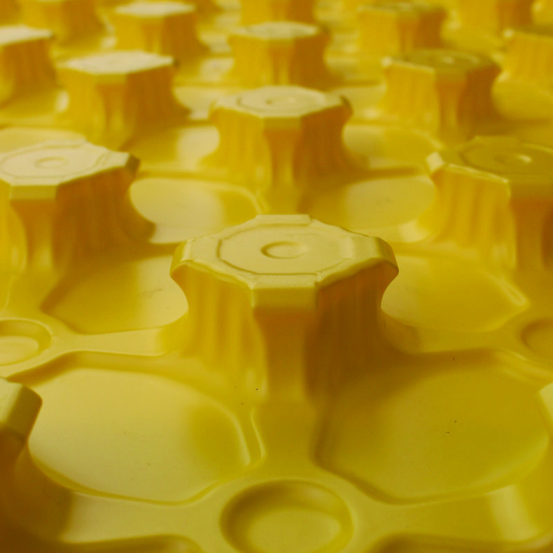 Предназначена для укладки труб при обустройстве системы «теплый пол». Плиты имеют бобышки с обратным углом для фиксации труб отопления. Укладка внахлест и фиксация одного края плиты на другой по принципу «кнопочного замка» облегчает монтаж и предотвращает возникновение мостиков холода и звука при заливке стяжки.