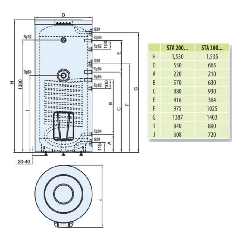 Нагрев воды в бойлере может происходить при помощи любого котла или солнечного коллектора. Модели STA200…STA500 имеют рабочее давление до 10 бар, STA800…STA1000 – до 6 бар.